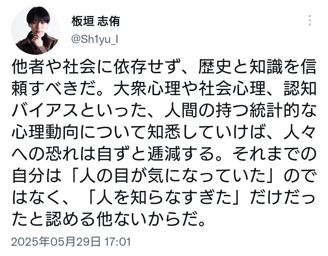 | … | 326無念Nameとしあき25/11/05(水)22:02:26No.1364052225+>Xでよくわからん浅いポスト連発する仕事ない声優 |