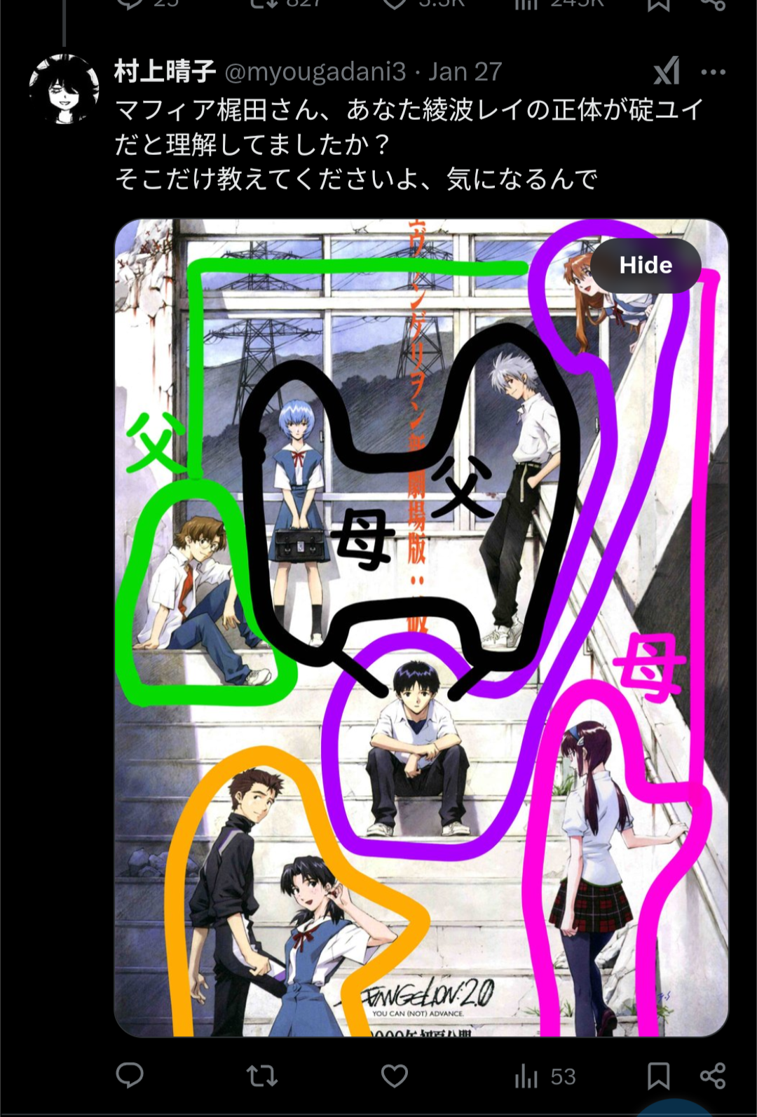 | … | 31無念Nameとしあき25/11/05(水)19:52:29No.1364013295そうだねx6 1762339949718.jpg-(1960643 B) 庵野的にテレビ版21話の時点で綾波レイの正体が碇ユイだと明かしたつもりだった |