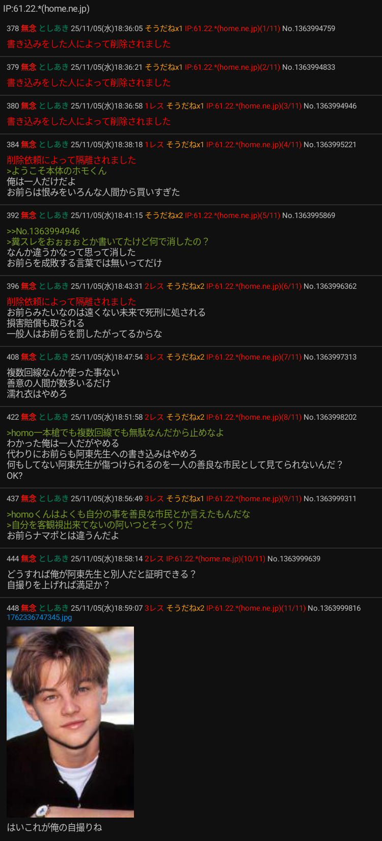 | … | 23無念Nameとしあき sage25/11/05(水)19:20:28 IP:163.49.*(vmobile.jp)No.1364004908そうだねx10ナマポ連呼ってまるで本人みたいじゃない |