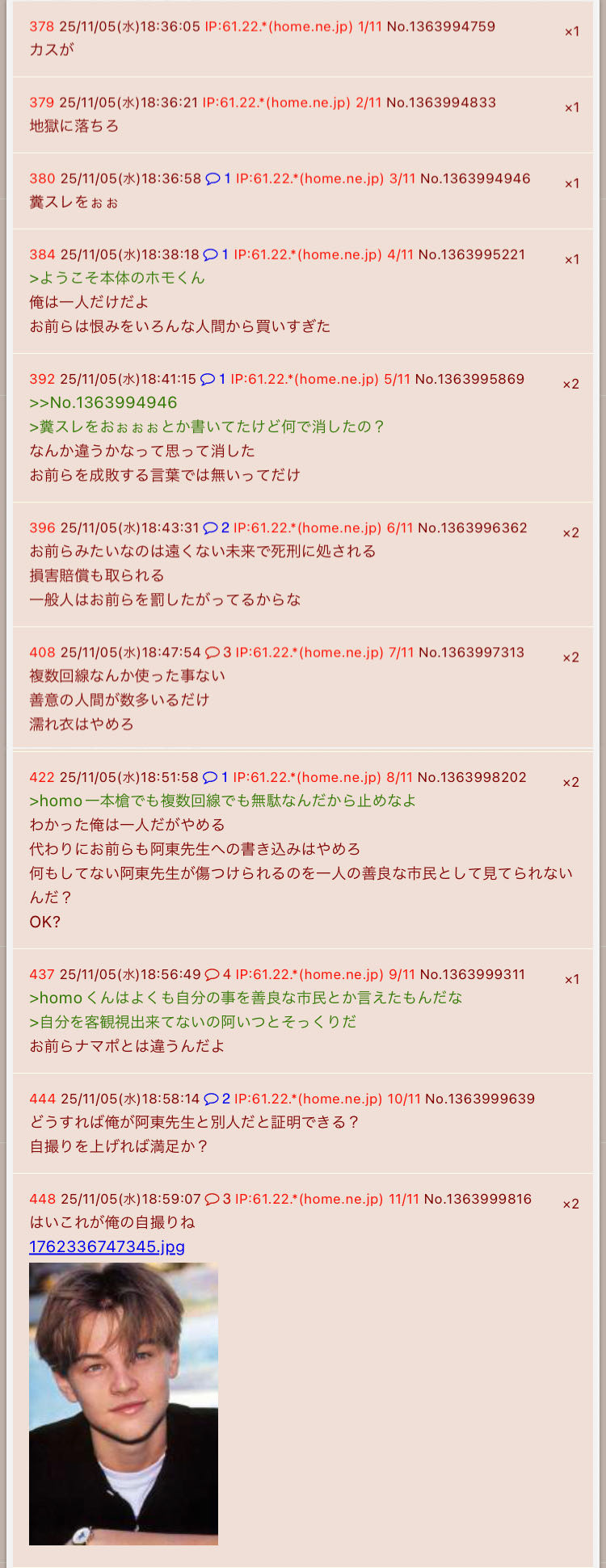 | … | 377無念Nameとしあき sage25/11/05(水)22:59:24 IP:153.231.*(ocn.ne.jp)No.1364068154そうだねx10らおんは性格最悪で辻アドする最低のパクリ野郎だけど |