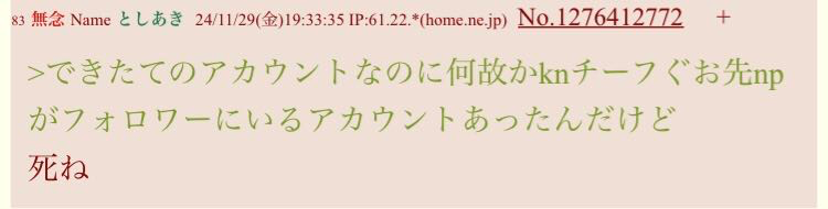 | … | 41無念Nameとしあき sage25/11/05(水)19:31:37 IP:133.114.*(nuro.jp)No.1364007696+>度々言われてるけど界隈的思考の人でも同じ金額でカカシフォロワー買う方がいいでしょ |