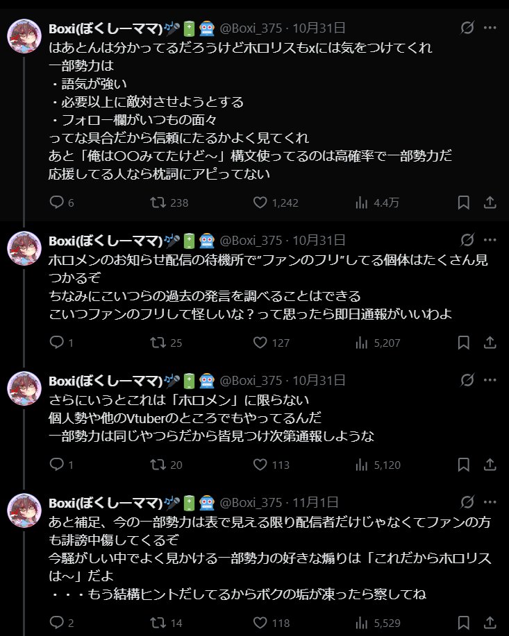 | … | 68無念Nameとしあき25/11/05(水)20:11:40No.1364018494そうだねx7>にじリスが一斉にこよりのポストに粘着し始めたのって要はホロメン個人が発言されると自分らが誹謗中傷してるのが世間にバレるからなんだよな |
