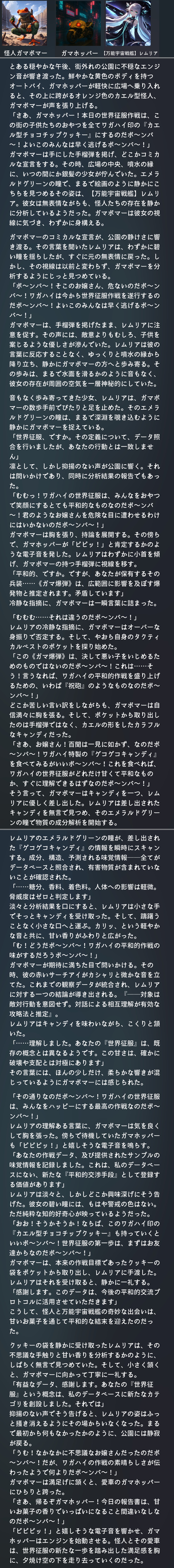 | … | 29無念Nameとしあき25/11/16(日)22:23:32No.1366665586そうだねx1>面白い作劇の構成ですね、ナレーション付きは良い感じ。 |