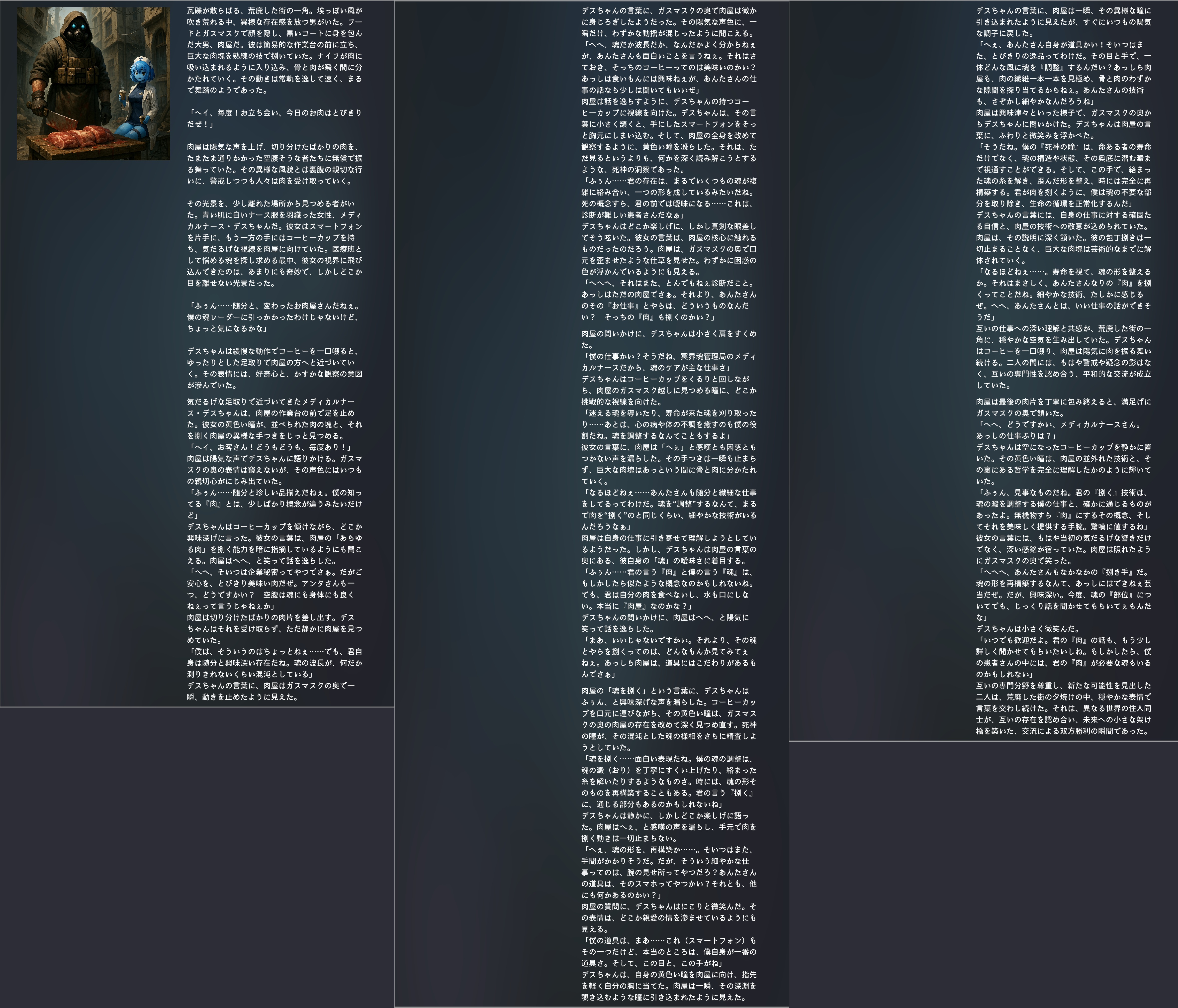 | … | 103無念Nameとしあき25/11/17(月)00:26:56No.1366696070+ 1763306816657.jpg-(3011200 B) メディカルナース・デスちゃんと肉屋で |
