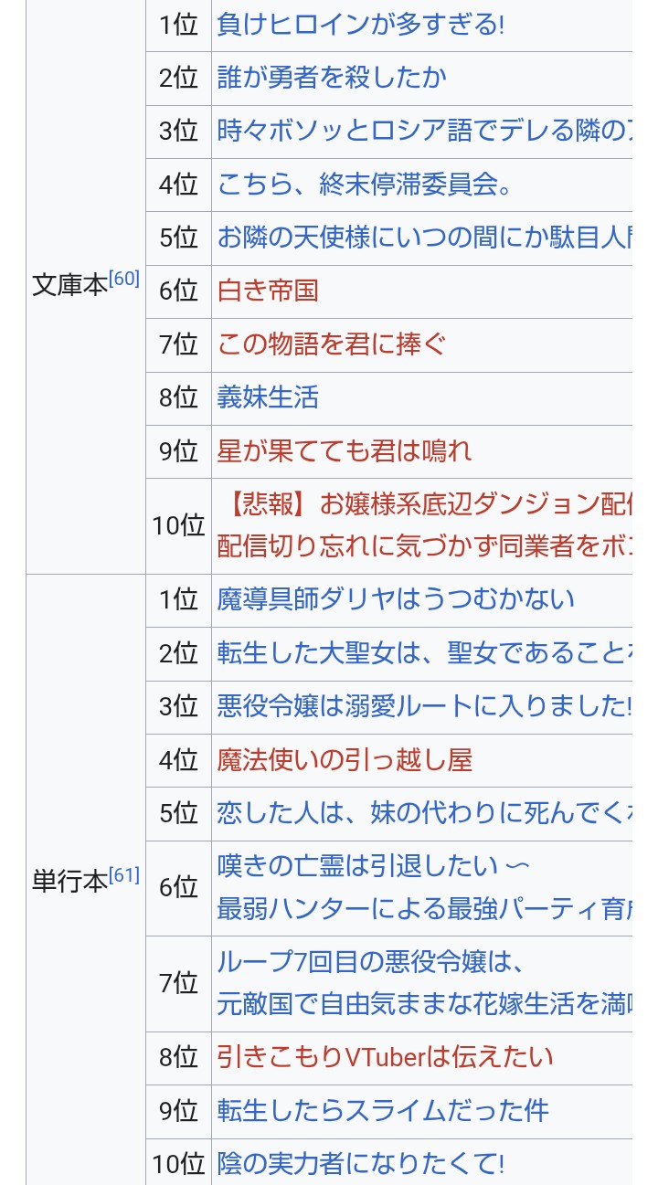 … | 427無念Nameとしあき25/10/07(火)22:39:51No.1357019963+このラノはすでに人気なのがランクインすること多くてぶっちゃけそんなに売り上げに繋がらないし |