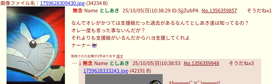 … | 36無念Nameとしあき25/10/07(火)20:55:20No.1356987813+いつも自虐ネタやってるなスレデブ君 |