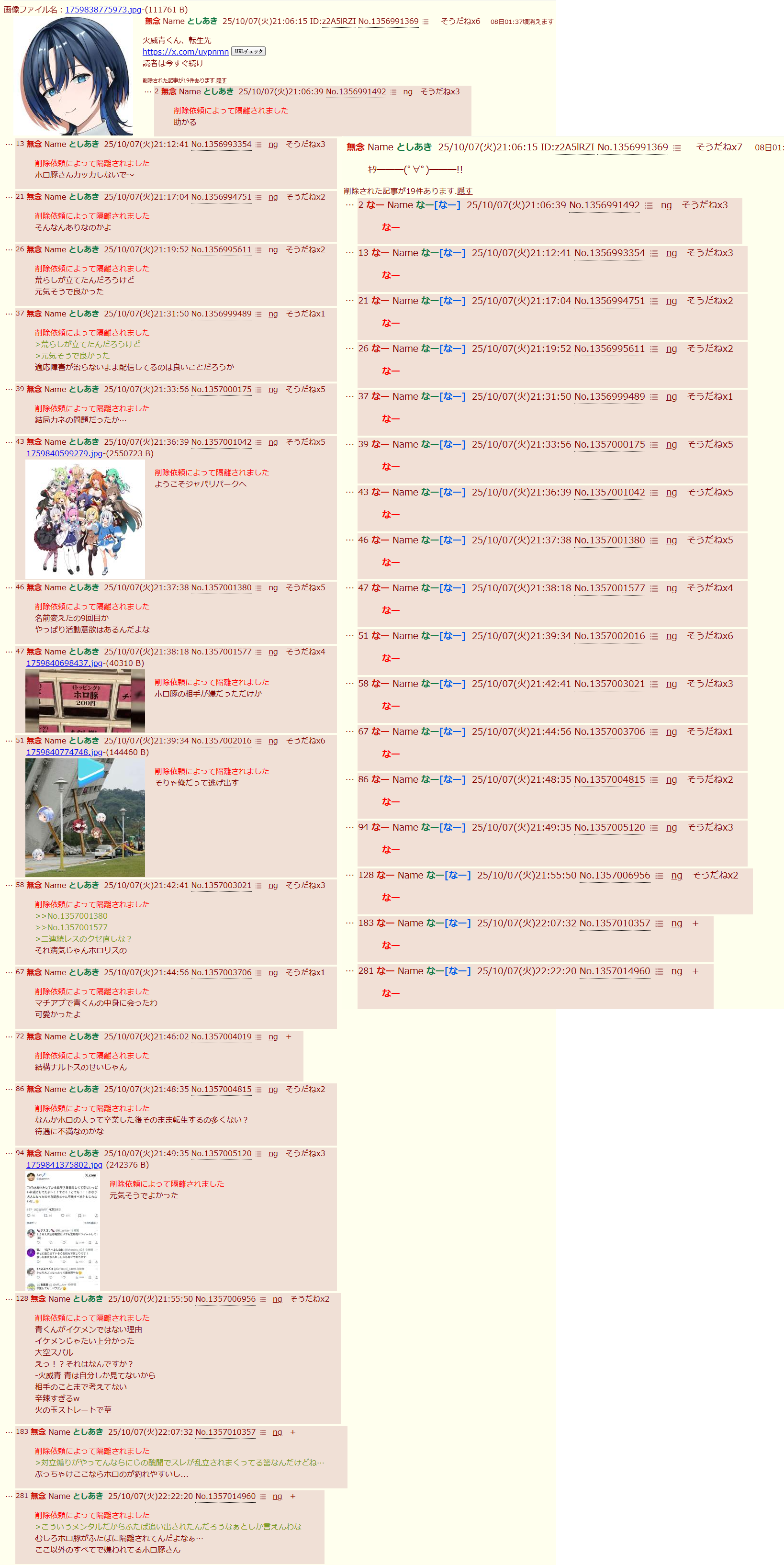 … | 10無念Nameとしあき25/10/07(火)21:11:16No.1356992934そうだねx9ホロ板にも立ててやがる |