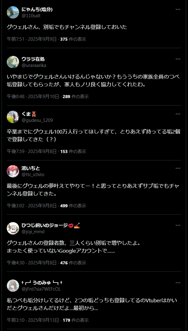 … | 482無念Nameとしあき25/10/07(火)23:05:05No.1357026768そうだねx2にじリスは複垢で登録者数の水増しをしているのを公言しているのか |