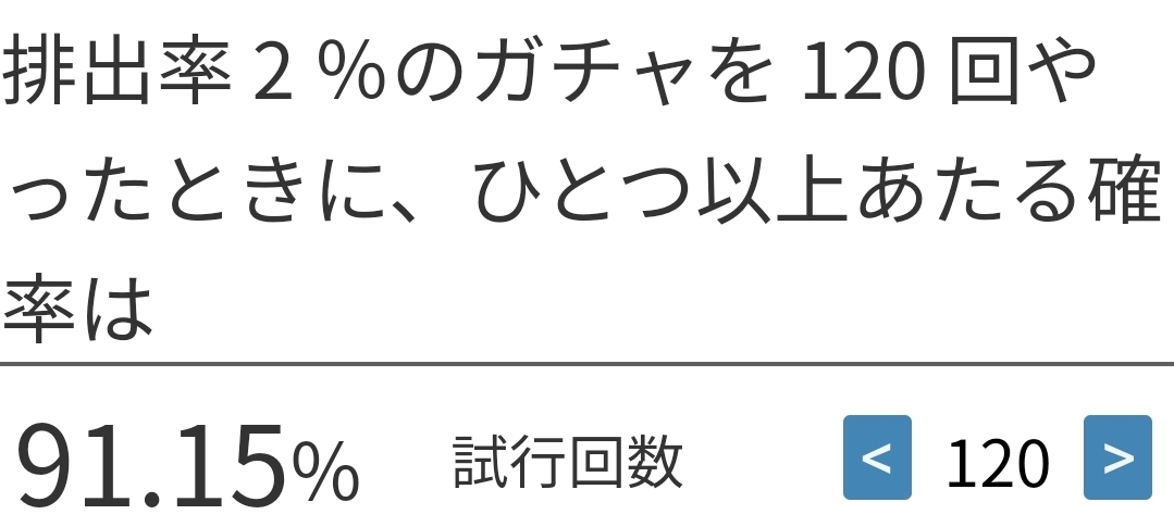 … | 24無念Nameとしあき25/10/08(水)12:44:15 ID:LSqzaRNANo.1357114084+300連天井でピックアップがでない確率に似てるからその数字は信用できるけど信用できない |