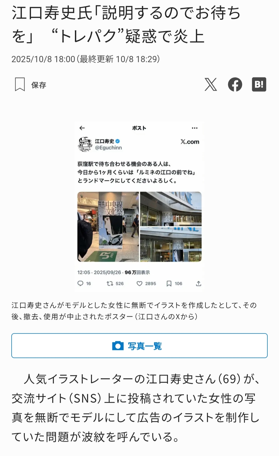 … | 976無念Nameとしあき25/10/08(水)22:53:55No.1357248037+>江口寿史スレ |
