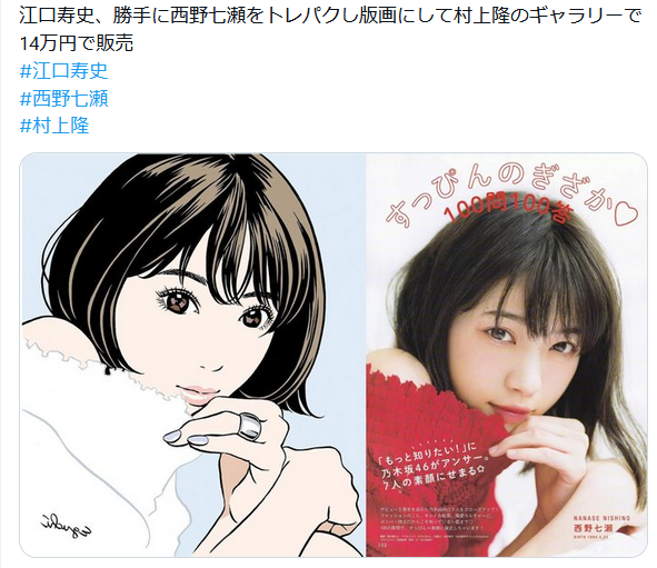 … | 908無念Nameとしあき25/10/08(水)22:49:30No.1357246763+>【悲報】江口先生、坂本龍馬のイラスト展で一人だけトレス使用 |