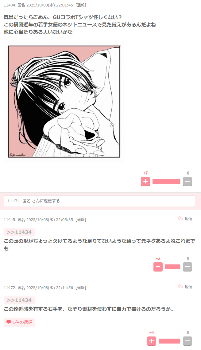 … | 85無念Nameとしあき25/10/08(水)21:44:18No.1357227818+ポーズの参考にしましたならまだしも服どころか服の色までそのままって何が描けるのこの人 |