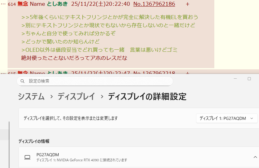 | … | 723無念Nameとしあき25/11/22(土)20:46:59No.1367968987+OLEDをアンチってるのは使ったことないやつだけ |