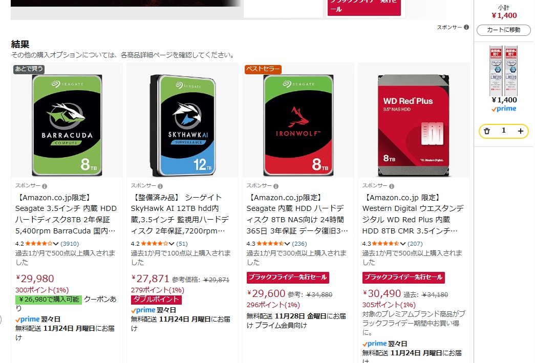| … | 766無念Nameとしあき25/11/22(土)21:15:23No.1367977091+>8TBのHDD欲しいんだけど余りにも価格が辛い |