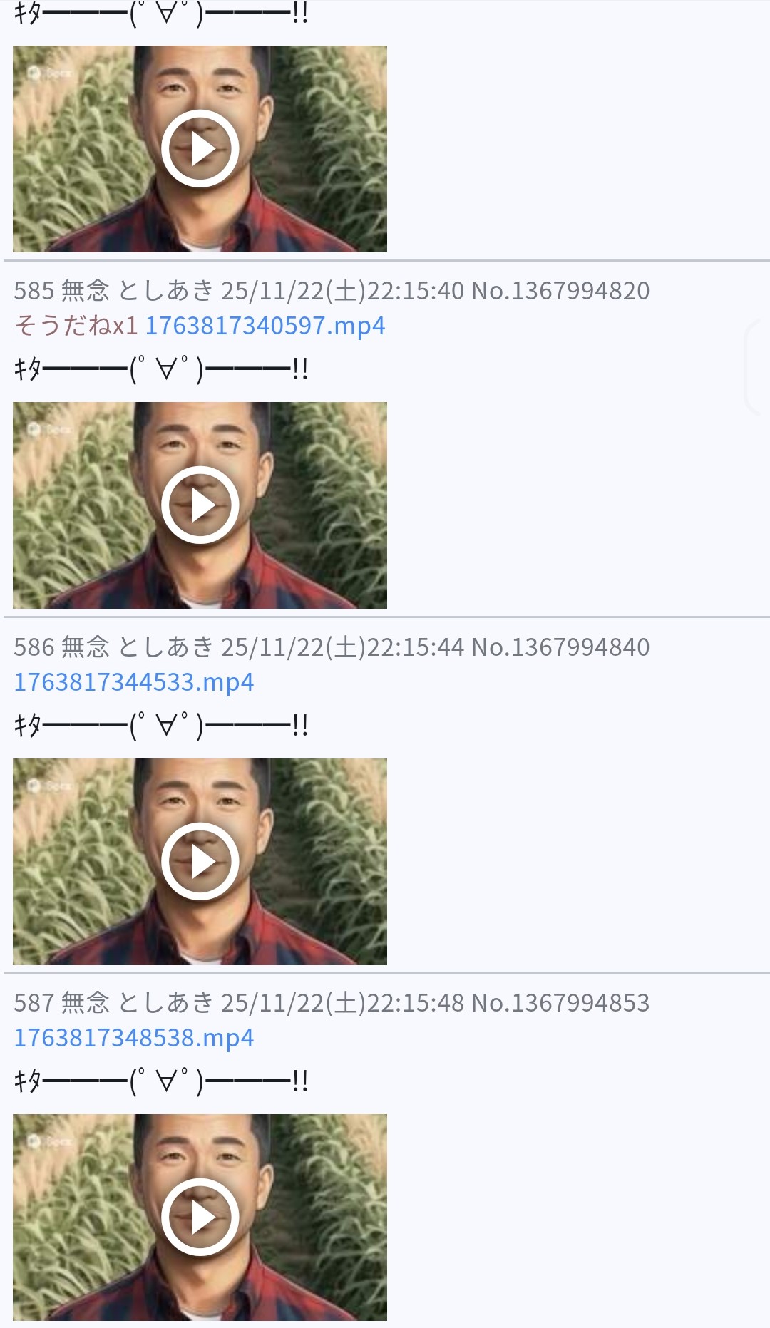 | … | 28無念Nameとしあき25/11/22(土)18:49:37No.1367937032そうだねx31>1763804890475.mp4 |