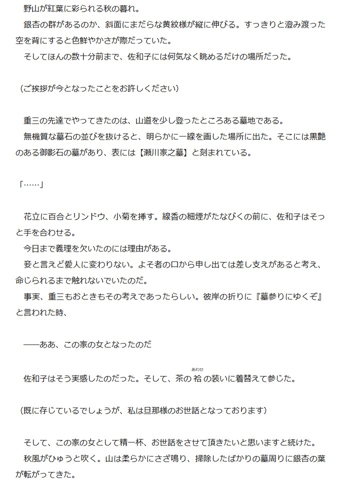 | … | 73無念Nameとしあき25/11/23(日)01:20:04No.1368040053そうだねx1>未亡人が再婚する際は白無垢姿で前夫のお墓に手を合わせた後新たな夫の元へ... |