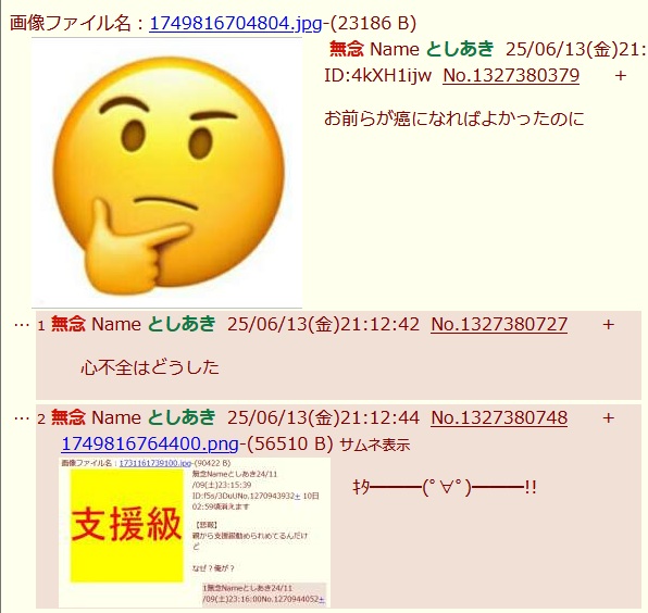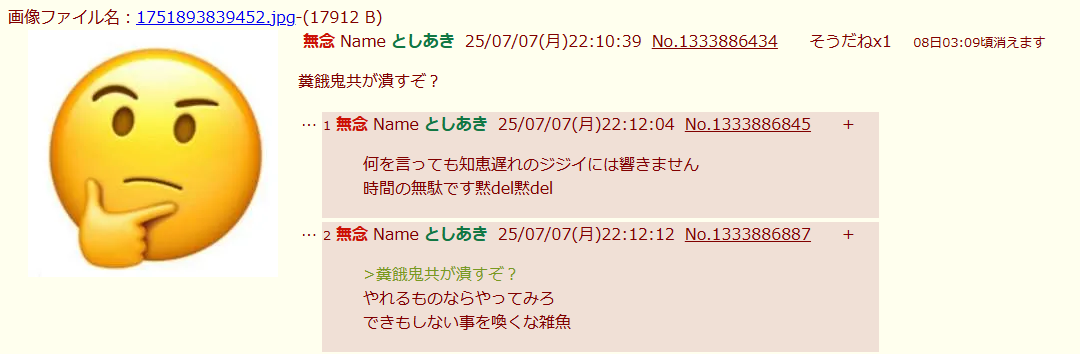 | … | 8無念Nameとしあき25/11/23(日)00:46:20No.1368033424+ 1763826380839.jpg-(90983 B) 支援級スクショ貼られたからスレ消して逃げるぞこの豚 |