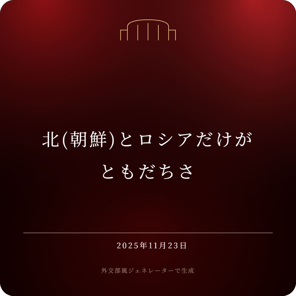 | … | 76無念Nameとしあき25/11/23(日)16:23:18No.1368172506+>この件に関しては北とロシアすらなんもコメントしてなくね? |