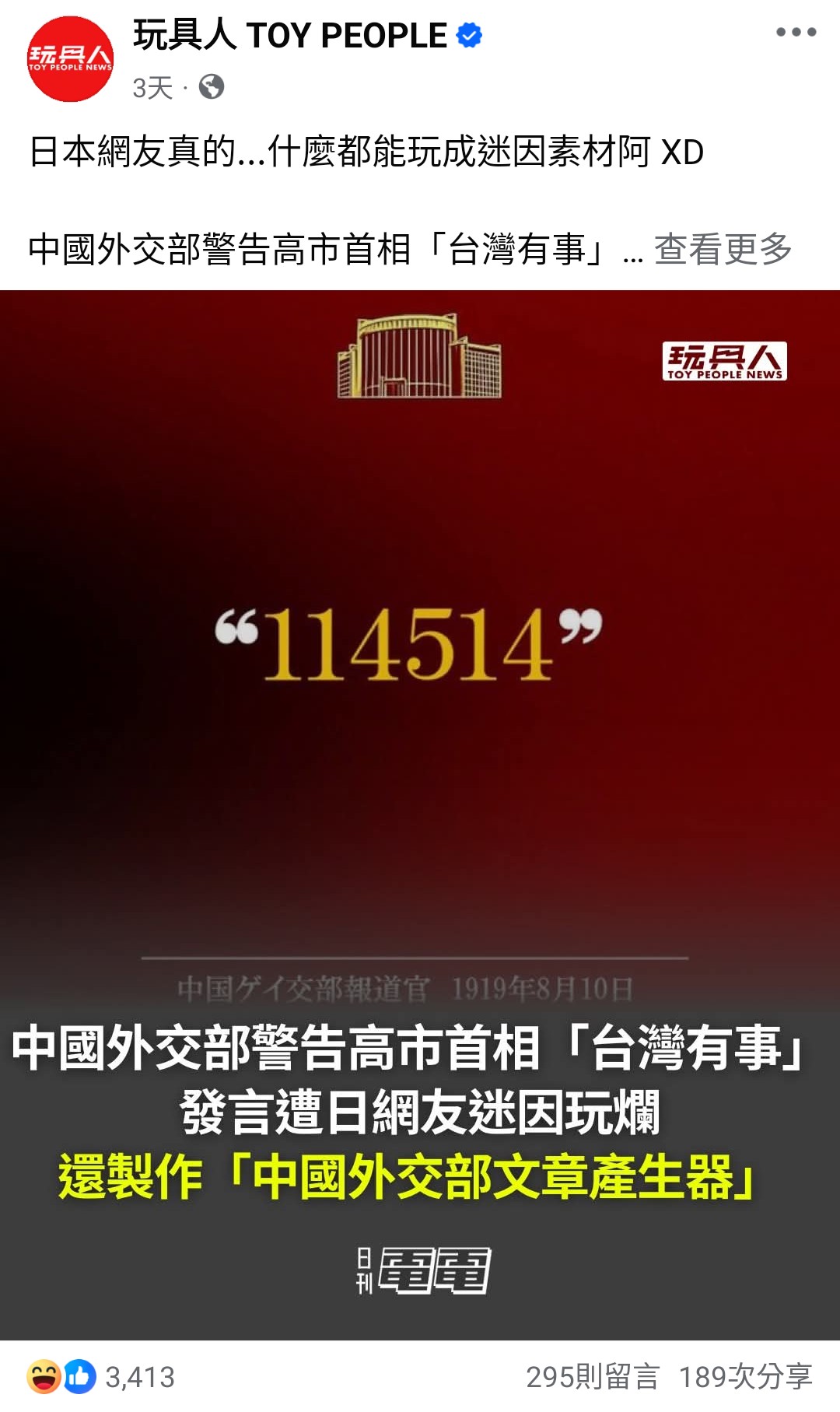 | … | 38無念Nameとしあき25/11/23(日)16:18:57No.1368171521そうだねx20 1763882337882.jpg-(117760 B) >台湾は中国領ってのが日本政府の公式見解だからな |