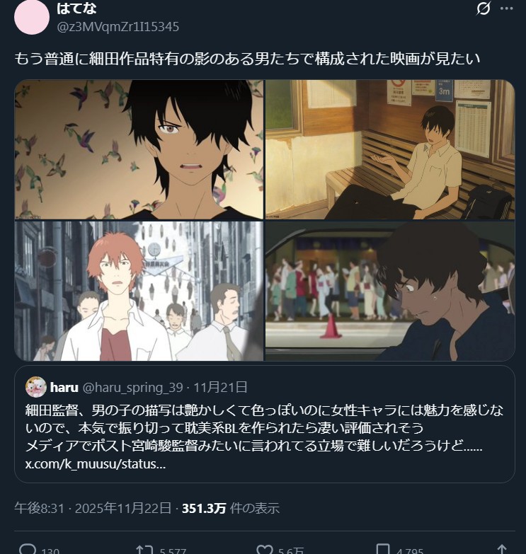 | … | 6無念Nameとしあき25/11/23(日)19:07:28No.1368215279そうだねx1細田作品がゴミしかないとか気付くの遅すぎと思う |