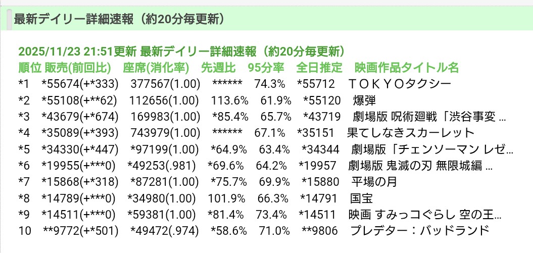 | … | 935無念Nameとしあき25/11/23(日)22:07:29No.1368273220+今回ので配給とかが興収が上振れした要因を分析しないのは分かった |