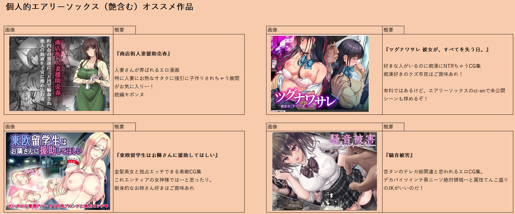 | … | 5無念Nameとしあき25/11/23(日)20:16:41No.1368235218+ 1763896601742.png-(983906 B) ちょっと古いが、エアリーソックス系列のおススメも貼っておく |