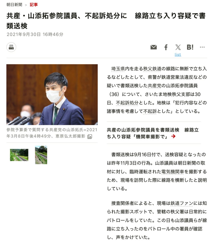 | … | 799無念Nameとしあき25/11/24(月)00:32:30No.1368310973+共産党も撮り鉄議員に質問とかさせるなよ |