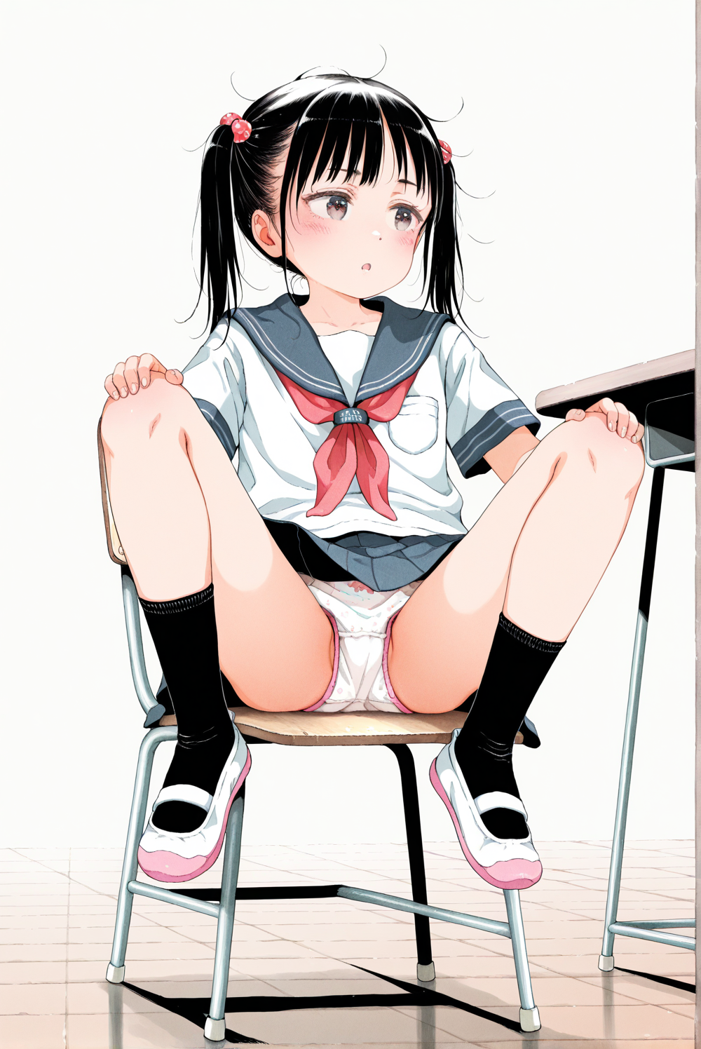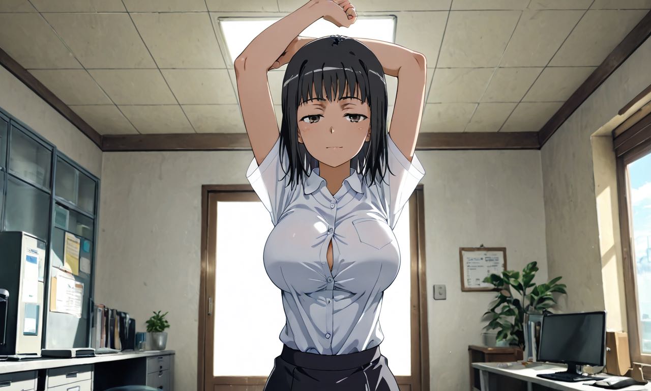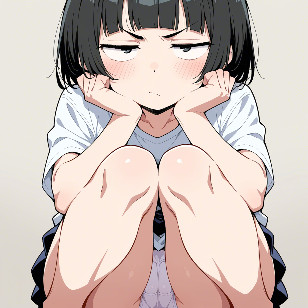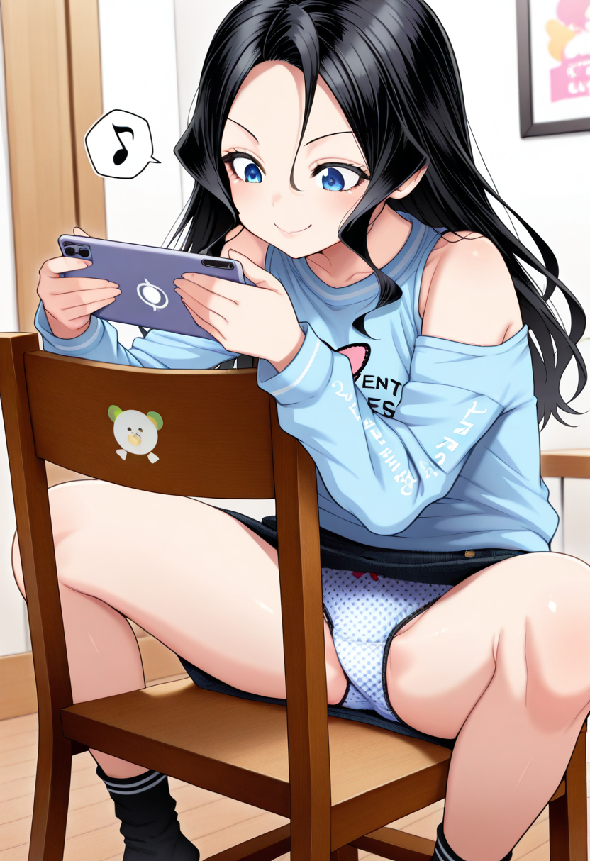 | … | 601無念Nameとしあき25/11/24(月)01:02:38 ID:TTj0gDikNo.1368316713そうだねx8 1763913758312.png-(1147255 B) sitting on chair, watching porn, over back of head pov, 1girl, solo, shirt, large breasts, sitting, no panties, white panties around one leg, bare bottomless, hand over crotch, indoors, bra, kneehighs, thick thighs, from above, white socks, table, plump, cable, computer, monitor, drink can, see-through shirt, bra visible through clothes, keyboard \(computer\), tissue box, beer can, soda can, mouse \(computer\), |