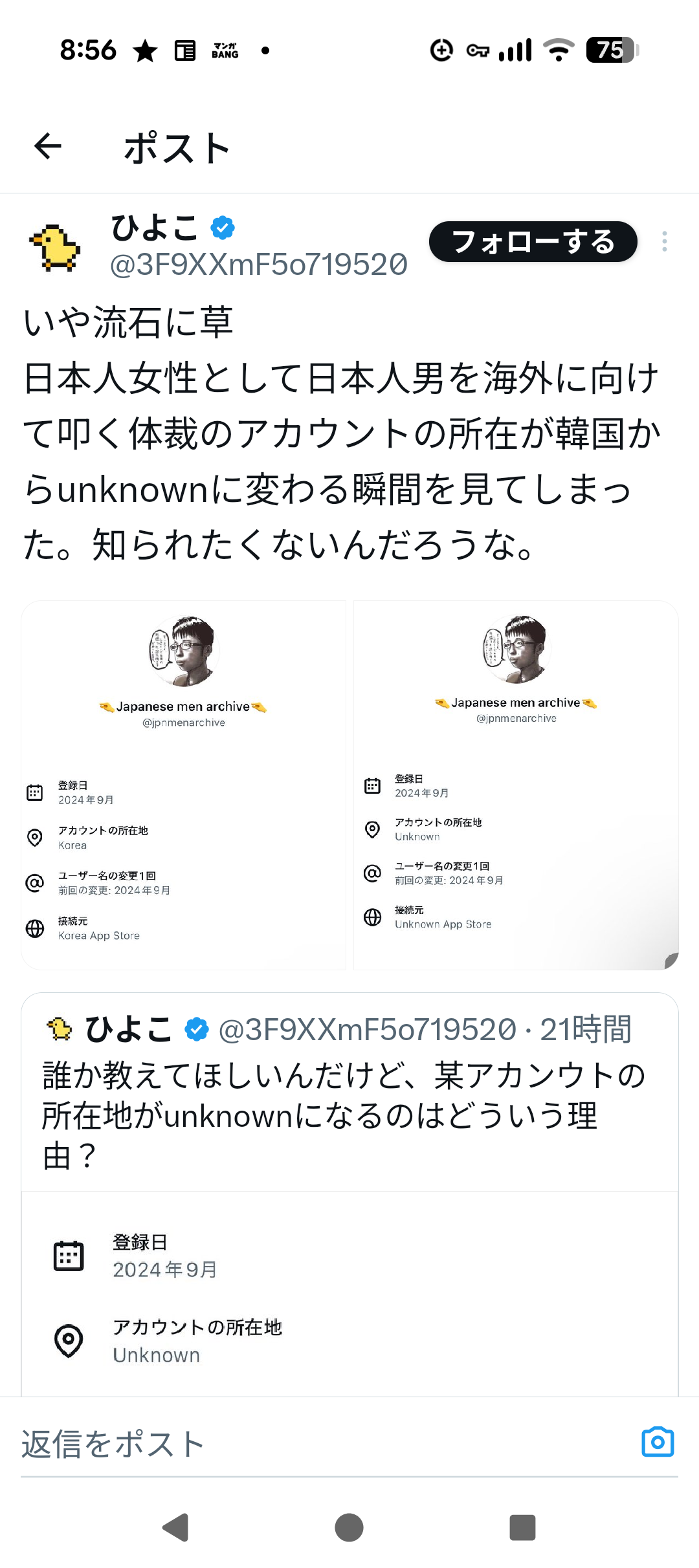 | … | 79無念Nameとしあき25/11/24(月)00:37:44No.1368312033+国籍がアンノウンになってる人ってなんなの? |