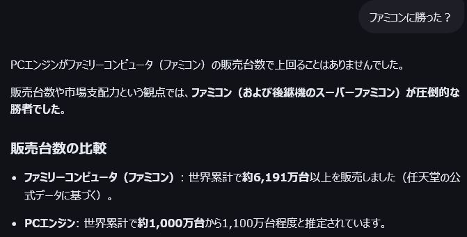 | … | 86無念Nameとしあき25/11/24(月)05:57:26No.1368334164+>AIにPCエンジンの事聞いたら間違いだらけなんだが |