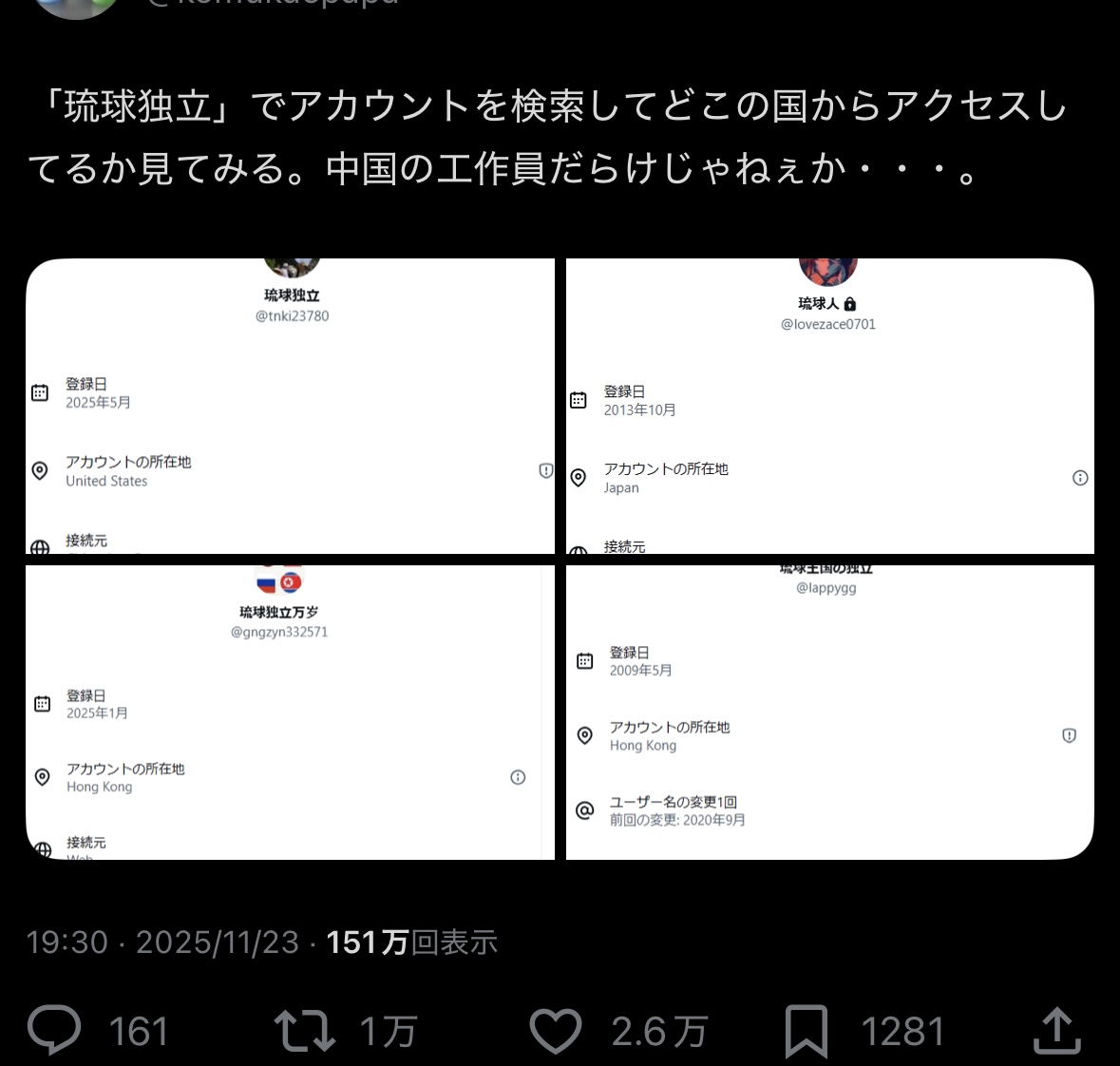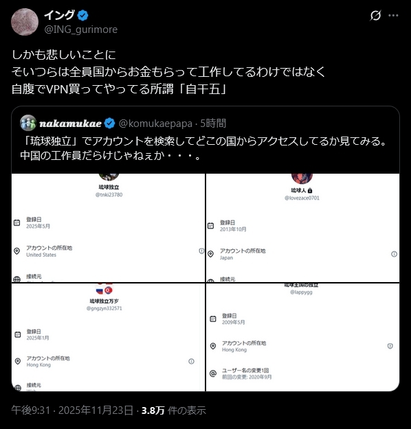| … | 29無念Nameとしあき25/11/24(月)06:57:11 ID:D9rGGazwNo.1368336922+>中国共産党工作員のXアカウントの見分け方 |