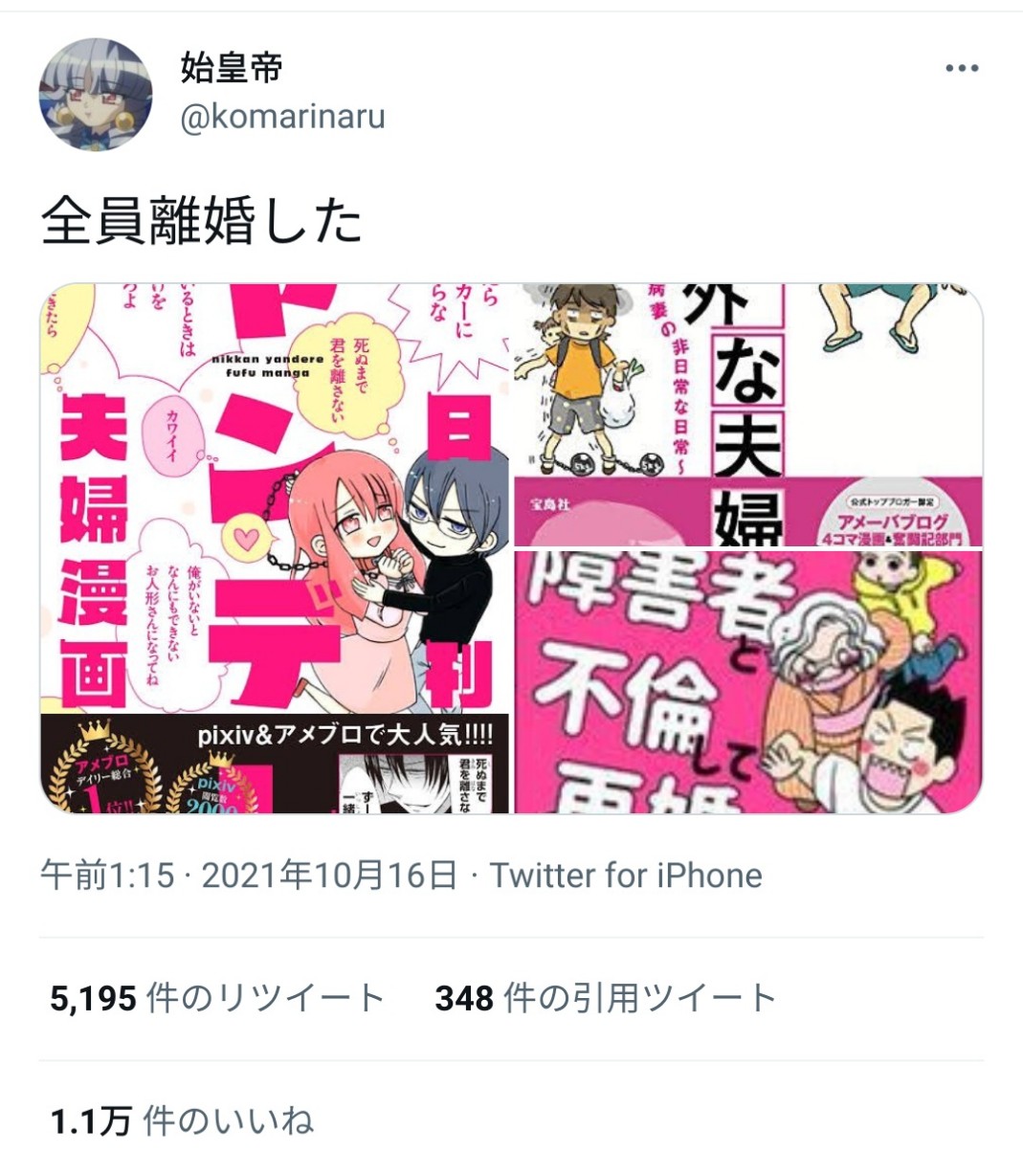 | … | 51無念Nameとしあき25/11/24(月)08:22:19No.1368344305+結婚が幸せなモノであるなら離婚などという概念は存在しない |