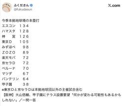 バンテリンって言うほどホームラン出づらい球場じゃないんだろうか 下半分とそんな変わらんし昔より増えてる気がする なんか変えたんだろうか |